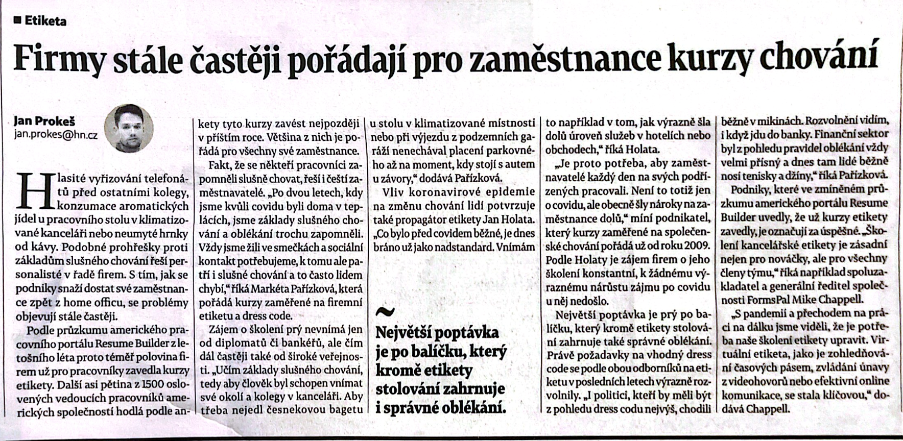 Michaela Katolická, generální ředitelka, Czechoslovak Group, Praha: Workshop s Markétou Pařízkovou nebyl jen o etiketě. Byl o postoji, sebevědomém vystupování a